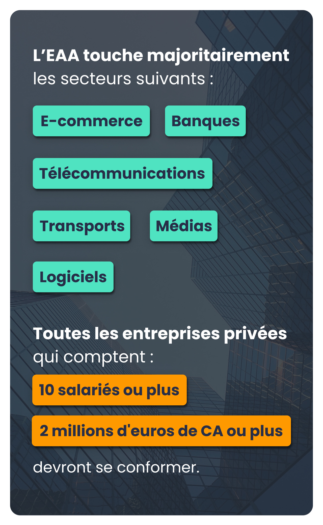 Les décideuses et décideurs de votre entreprise pour comprendre les enjeux business de l'accessibilité et les intégrer dans la stratégie d’entreprise ;